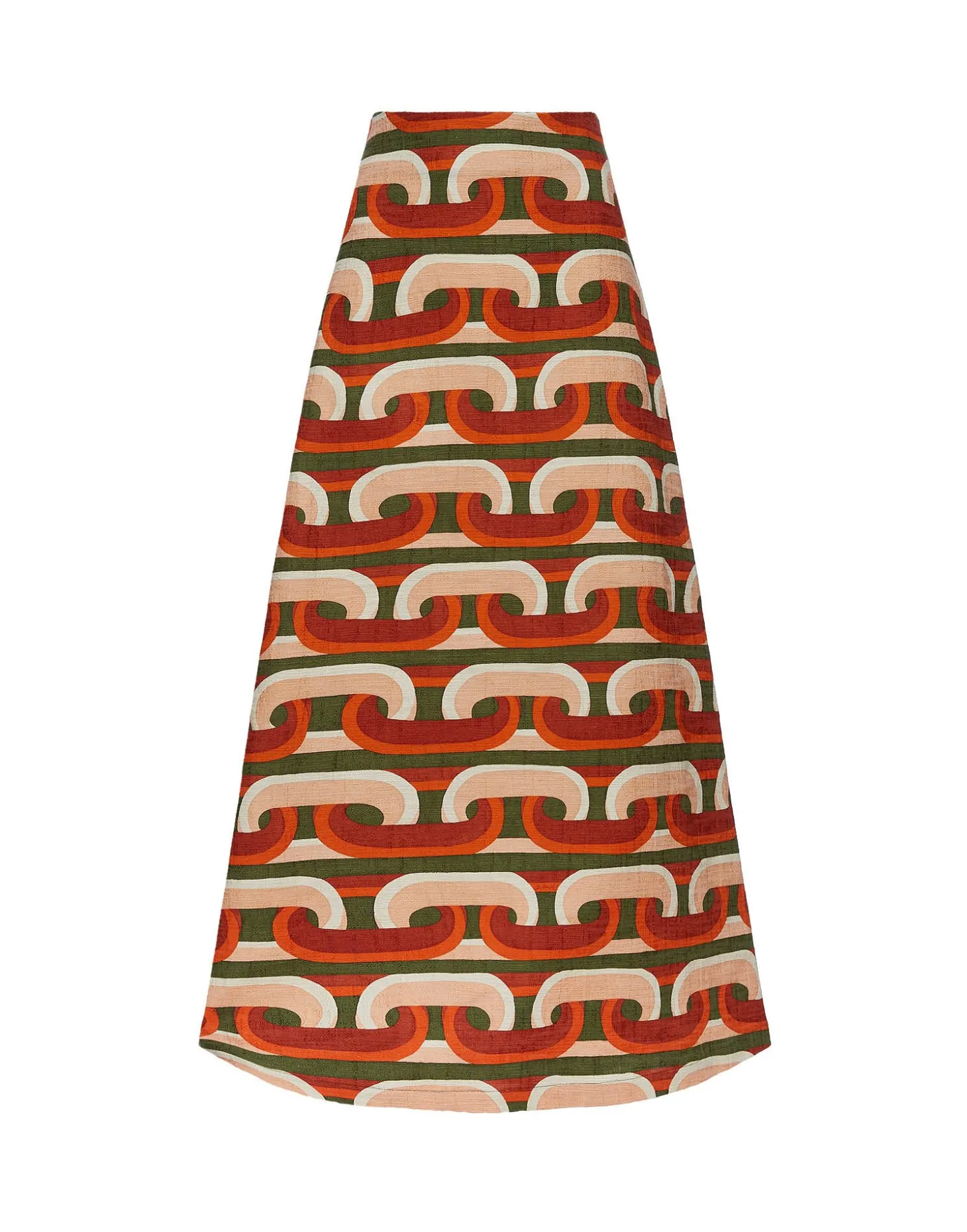 Long and lovely, this super skirt has a mid-rise waist, falling slim on the hips into an A-line shape that swings above the ankle. Fabulous in our latest print, it arrives for the summer season crafted from Italian shot cotton which has a nubby linen feel perfect for city sauntering or vineyard hopping. Also great: pockets. Fabulously versatile from the office to weddings, vacations and beyond, tuck in your fave silk shirt and call it an outfit.