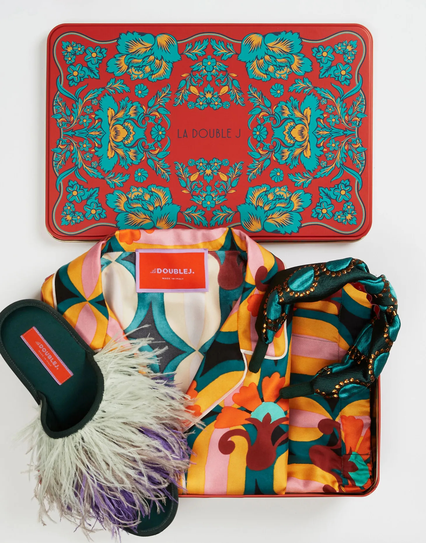 We knew when we first developed our Case of Curiosities collection we’d simply have to launch with our Amore Case. Arriving in our romantic Va Va print, this vessel was crafted as a colorful container for your most precious (and/or scandalous) love letters, mementos and romantic keepsakes. It also proves perfect “preparation station” for a dazzling night out…or in! Fill it with your most seductive perfumes or mamma mia makeup for dinner, or with your silk LDJ Pajama Set, your cosy Cherry Knit Kit, or your perfect DoubleJ date night table set for two. Planning a trip to Italy any time soon? If we were you, we’d stock up, bella. After a sojourn through our beloved home country, you’ll likely need more than one of these beauties (Italia is the nation of amore, after all.)