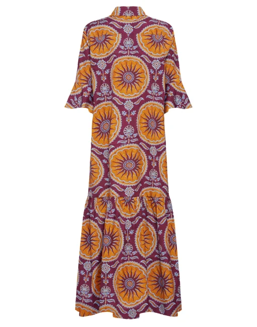 We’re big fans of drama, and our Artemis Dress brings it. We’ve cut it in a voluminous shape for added wiggle room and comfort and given it a frisky touch with a pointed collar and frilled sleeves. Our light, breezy cotton makes this an easy day to night dream, while our eye-catching Sovereign print has 100% where-did-you-get that appeal. Its namesake was the Goddess of the Moon, so we’ve pumped it with a big frilled hem so you can dance under the moonlight.
