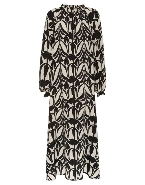 Cerere Shirt DressPapyrus Black & White in Crepe De Chine Silk