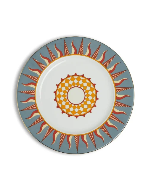 Our Charger Plate is made from the highest quality porcelain with a hand-painted gold trim. What is a charger, you ask? Both functional and decorative, it’s an ornamental placeholder to spice up your table settings, substitute for a placemat or use as an extra big serving plate for when you’re really, really hungry. Inspired by the Ancient Egyptian Sun God, Ra, this bountiful beauty layers perfectly under our Rainbow Soup and Dinner Plates, or alongside our delicious Mixed Dessert Plate set from the Solar Collection. Oh, and it goes in the dishwasher. You’re welcome.