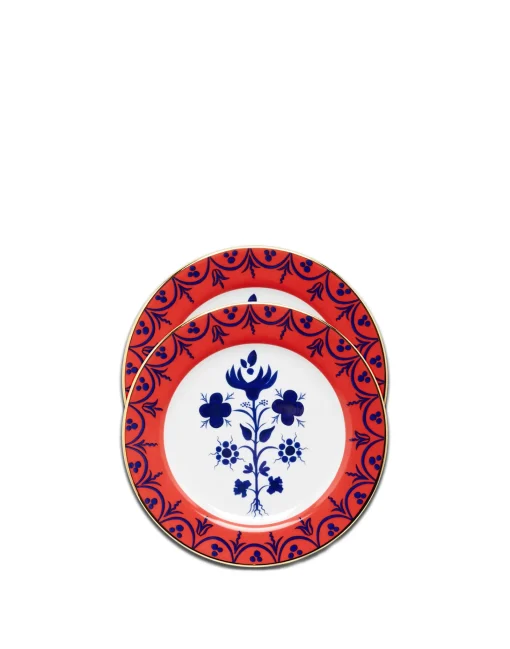 Part of our heart-pumping collaboration with the legendary Gallery Von Bartha, J.J. trawled through Miki Von Bartha’s archives of antique Transylvanian textiles and ceramics to develop the design you see on these porcelain plates. We’ve got a range of designs that happy maximalists can mix together, or use this set to bring a jolly jolt to your white china and plain table. Great for a gorgeous gift, these dessert plates do double duty, so snag a few for your salad course or dot around your home as a handy spot for keys or crystals as well.