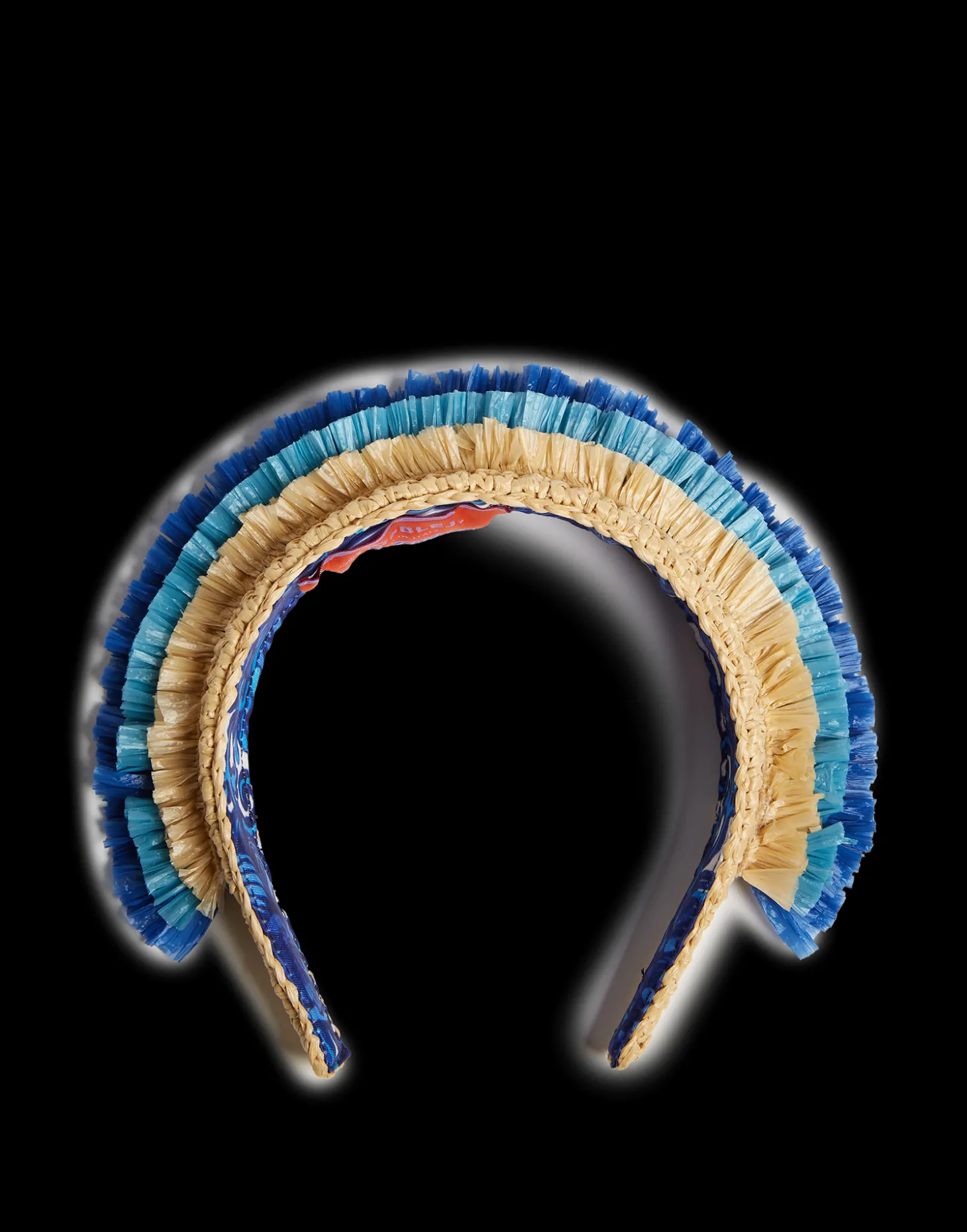 For our LDJ angels, this boho beauty radiates happy serenity handmade with tiers of fringed raffia and a silky structured hairband in our stunning Anemone print. Slide it on for the chicest beachside style at La Fontelina, or pair with our Choux Dress for a quick and cute cocktail look.