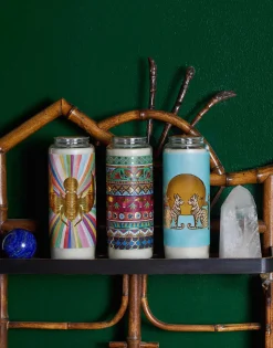 Let there be light! With elevating your energy state as one of our main objectives here at LDJ, we’re delighted to deliver these stunning statement pillar candles designed as the perfect addition to your at-home altar. Historically symbolizing a bridge between the heavens and the earth, pillar candles have illuminated the hearts and homes of the Italian people for centuries. Crafted from unscented mineral and vegetable wax, each of ours will arrive cloaked in three of our most uplifting prints – Bast, inspired by the cat-headed goddess of protection and pleasure; Nile, an energetic tapestry of geometrics and ancient symbols; finally, the Scarab, surrounded by rays in homage to the god of the rising sun, Kephri. Glowy. Giftable. Utterly gorgeous.