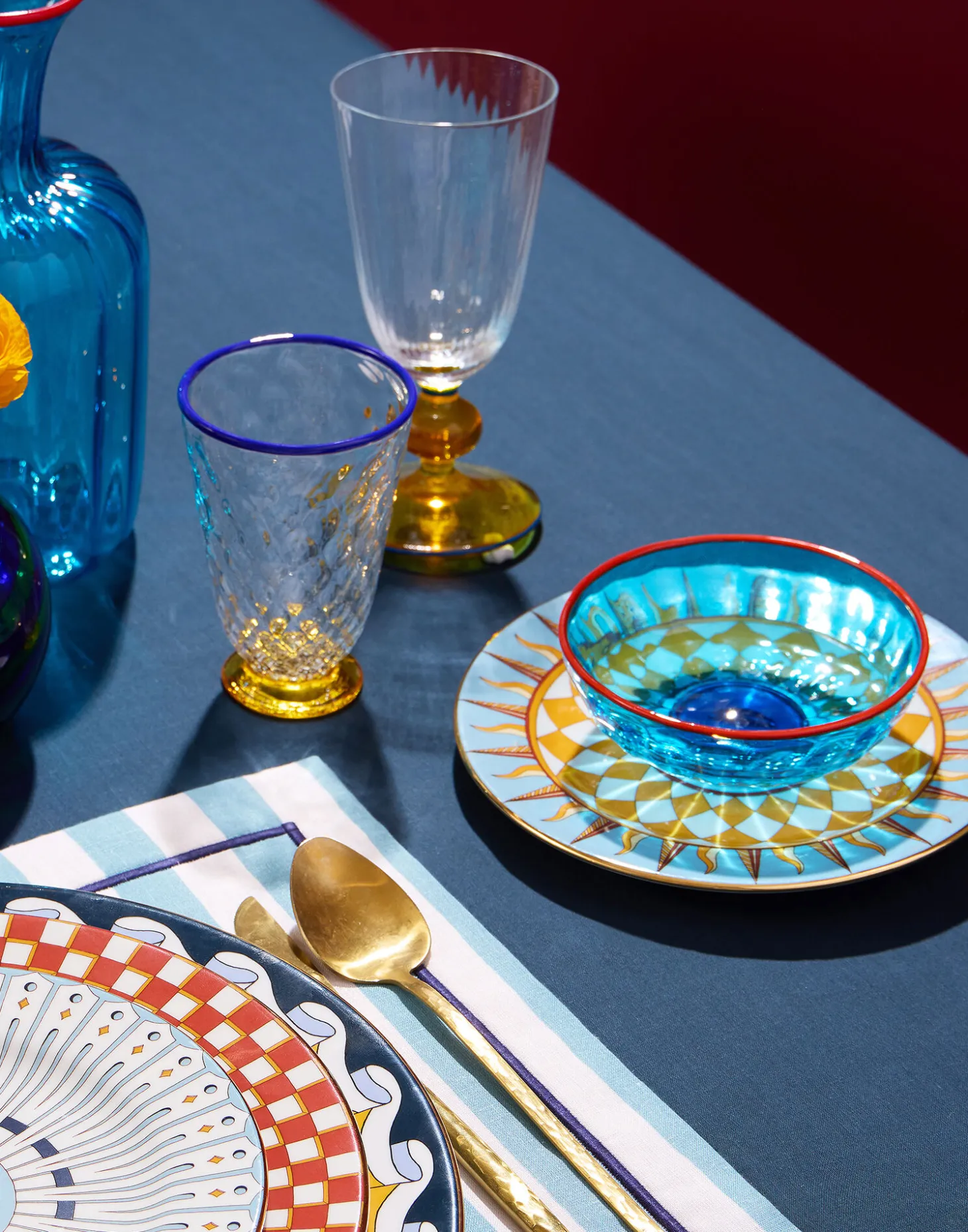 Is transparent pattern a thing? Well, if it wasn’t before, it is now with our stunning Quilted Glasses. We wanted to let the sculpted finish on these beauties shine, so we kept the color to the rim and the foot of the glass, allowing all that intricate hand-blown, Venetian craftsmanship take centre stage. Perfect for those looking for just a touch of high-vibe color on their table, or for mixing and matching with our Rainbow Water and Wine Glasses for a glorious Murano melange.
