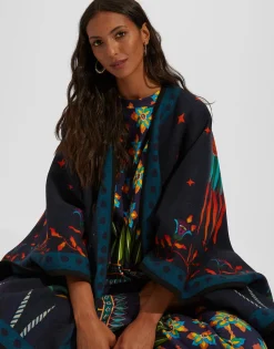 Reversible PonchoIsis Nero Placée in Baize Wool