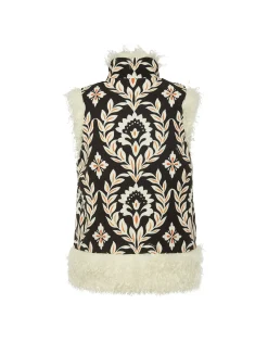 If we have one tip for you this season it’s to get into gilets. In homage to the iconic Afghan-inspired sheepskin coats that were the cornerstone of late 60s celebrity style, this version arrives crafted in our monochrome Ghirlanda print to easily slip in with the rest of your wardrobe. Cut in comfy compact jersey and trimmed with a cozy wool collar, its boxy shape and roomy armholes makes this the perfect layering piece for all your wanderlust winter sojourns. Throw it over the big-sleeved Poet Shirt, Big Shirt Dress or anything just as voluminous.