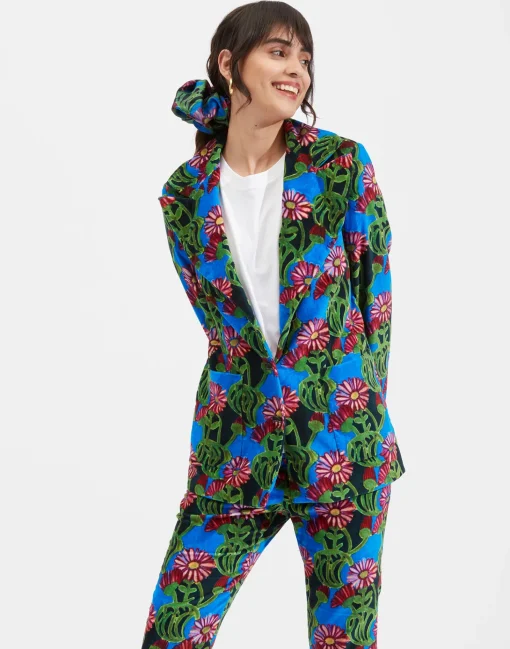 If the next Bond is a woman, she’s wearing this blazer. An updated take on a seventies silhouette, the 24/7 Jacket has a structured shoulder and slightly tapered waist for a fiercely flattering fit. Cut in sumptuous but sturdy Italian velvet cotton, pop this beauty over a black top and trousers for a pop of color to your minimalist office ensemble or pair it with our matching 24/7 Pant in the same print for next level boss badassery.