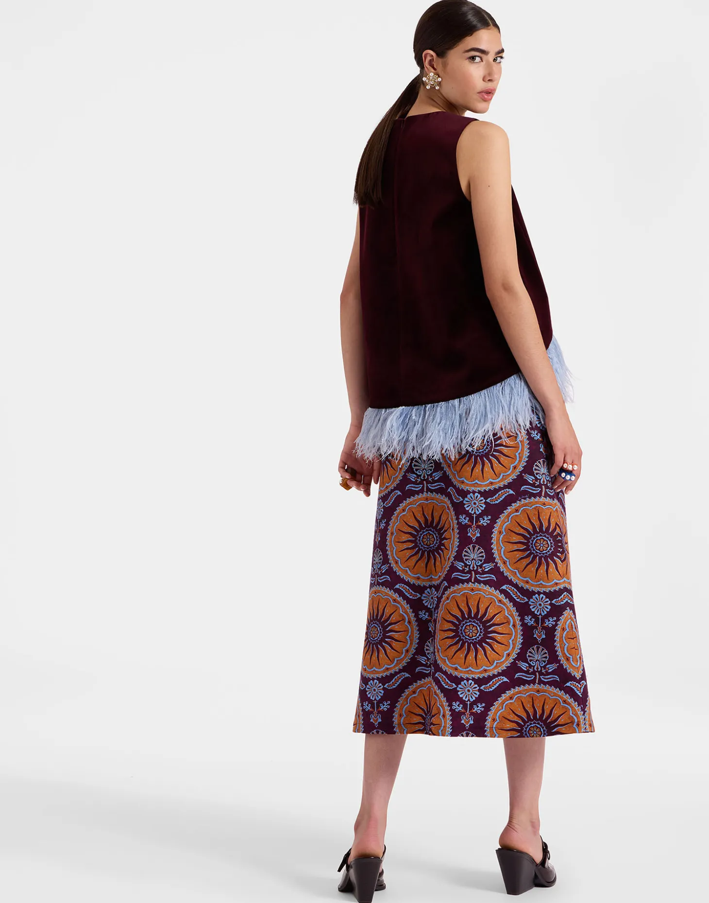Long and lovely, this super skirt has a mid-rise waist, falling slim on the hips into an A-line shape that swings above the ankle. It’s a winter wonder crafted in our warm wool cady which feels substantial and luxurious to touch and this stunning Sovereign print inspired by the Italian Renaissance arrives designed to deliver maximum impact. Fabulously versatile for your nine-to-five and beyond, tuck in the Charming Top or your fave silk shirt and call it an outfit.