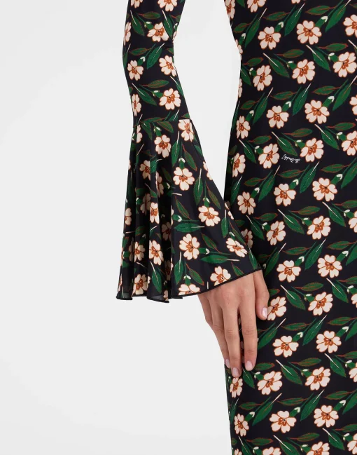 Oooh la la Alba! Studio54 meets 2024, this slinky number is cut in figure flattering stretch jersey that hugs (but doesn’t squeeze) your curves in all the right places. For a little extra oomph we added a wide flare to each cuff and along the hem, creating an hourglass effect. Deceptively simple, this silhouette stuns from every angle.
