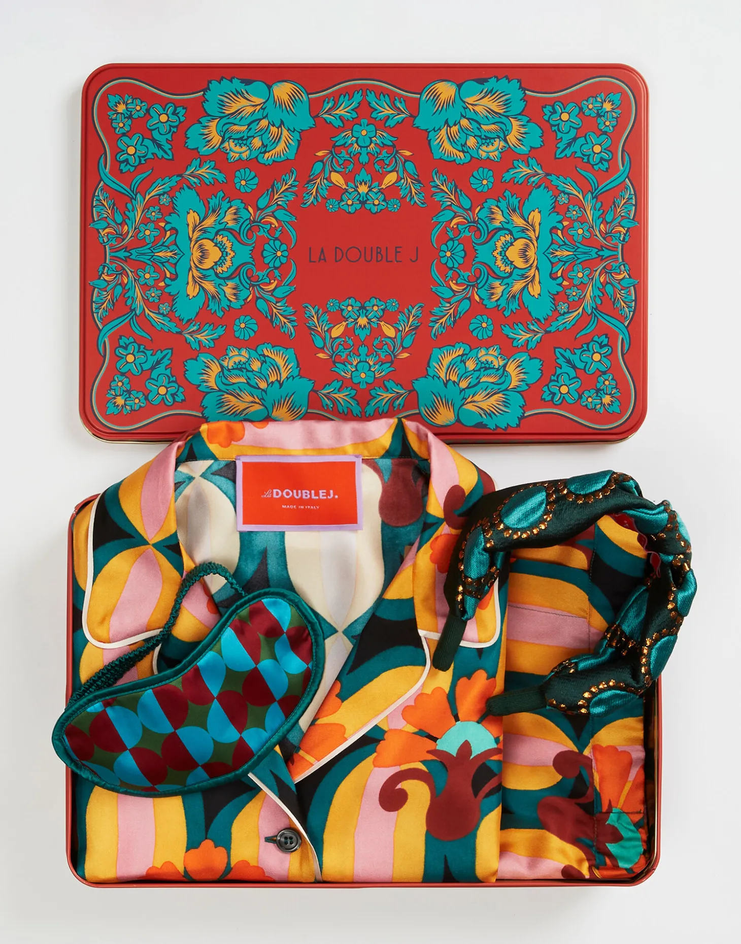 We knew when we first developed our Case of Curiosities collection we’d simply have to launch with our Amore Case. Arriving in our romantic Va Va print, this vessel was crafted as a colorful container for your most precious (and/or scandalous) love letters, mementos and romantic keepsakes. It also proves perfect “preparation station” for a dazzling night out…or in! Fill it with your most seductive perfumes or mamma mia makeup for dinner, or with your silk LDJ Pajama Set, your cosy Cherry Knit Kit, or your perfect DoubleJ date night table set for two. Planning a trip to Italy any time soon? If we were you, we’d stock up, bella. After a sojourn through our beloved home country, you’ll likely need more than one of these beauties (Italia is the nation of amore, after all.)