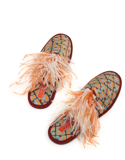 These glamorous mules reimagine the slipper in swish printed faille and responsibly sourced ostrich features that’ll tickle your ankles and give you something to smile about as you glide from boudoir to boardwalk – the rubber sole means they are perfect for both. Our ankle swinging Coulottes should really set them off.