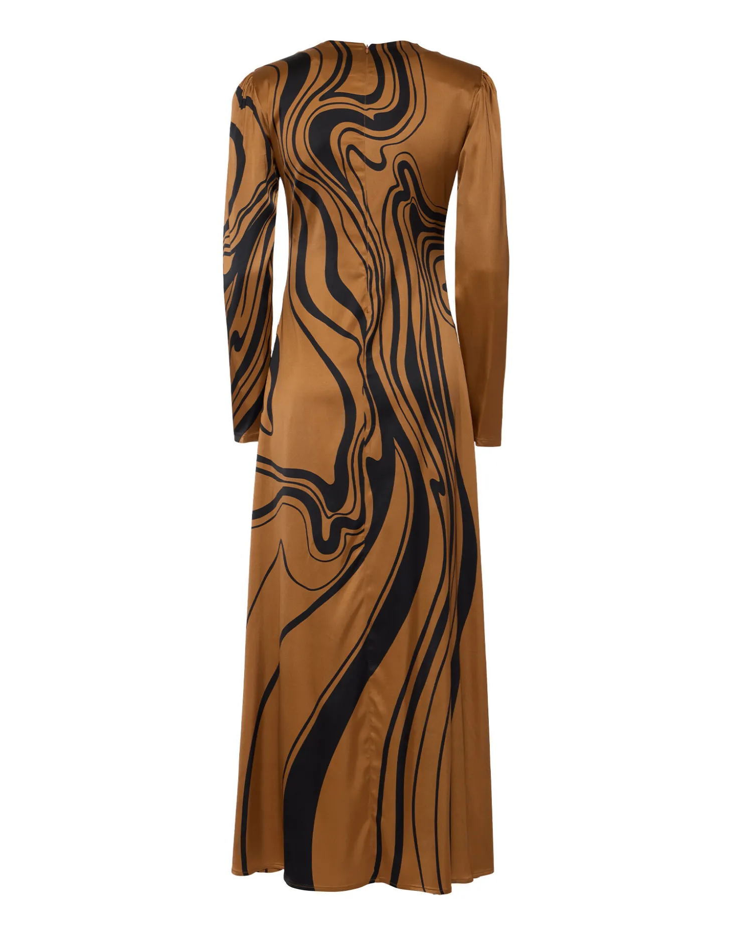 It’s the Long Sleeve Swing Dress you know and love, now in a more sensual, figure-hugging fit. With a curve-celebrating body that flares out at the hips into an ankle-grazing skirt, we crafted this beauty in a drapy Italian satin and hand-placed the ionic LDJ Big Blooms print across her for extra opulence.