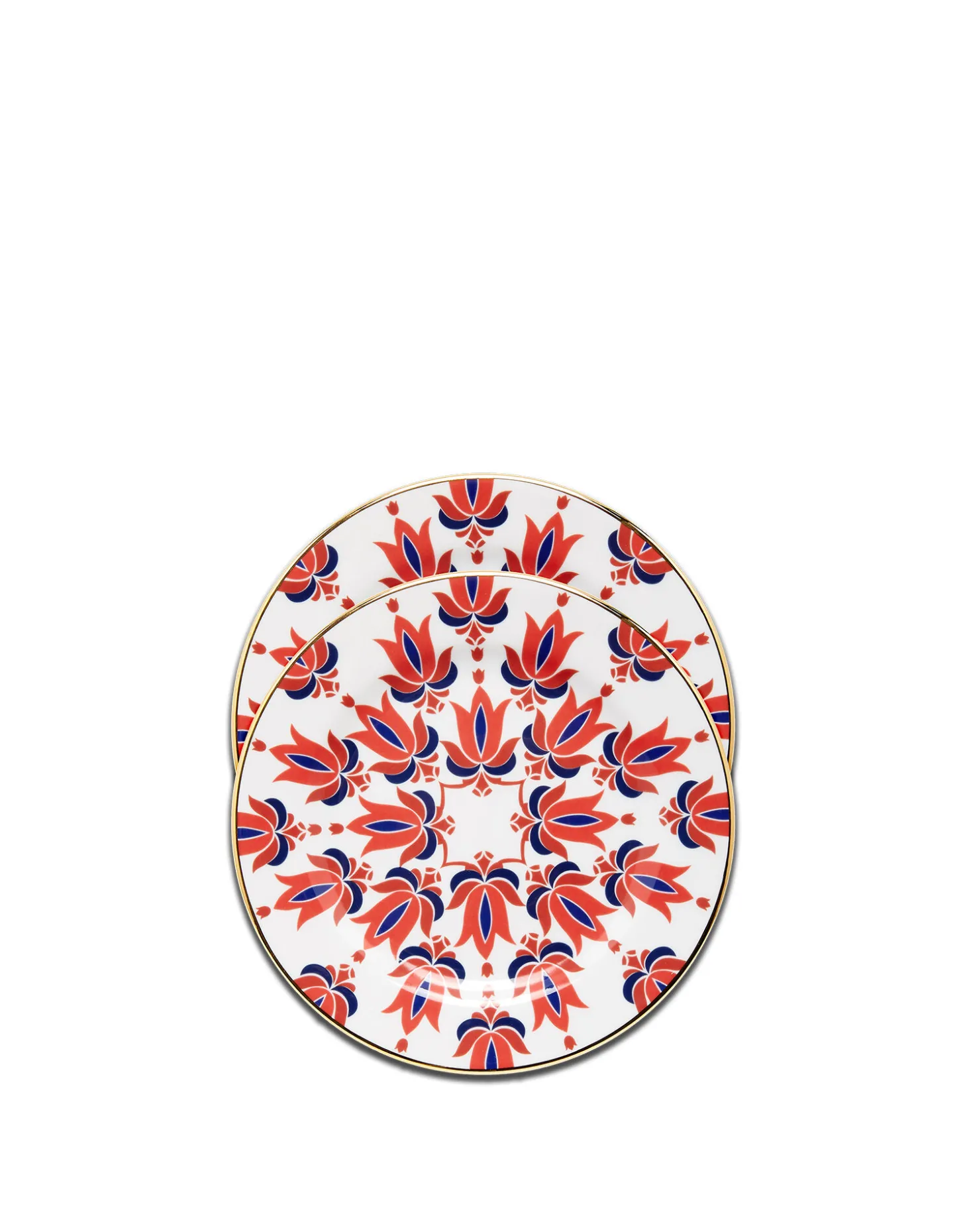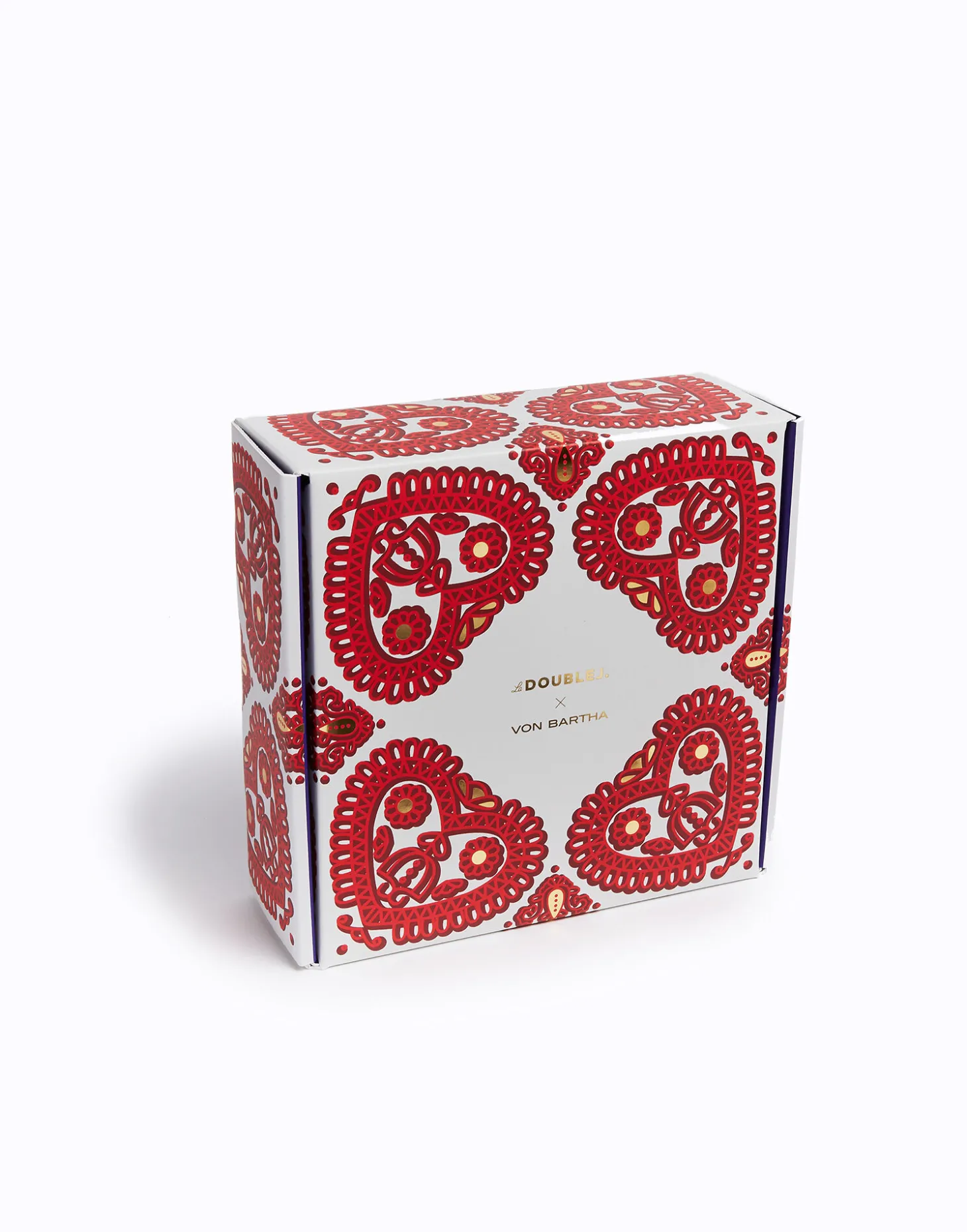 Part of our heart-pumping collaboration with the legendary Gallery Von Bartha, J.J. trawled through Miki Von Bartha’s archives of antique Transylvanian textiles and ceramics to develop the design you see on these porcelain plates. We’ve got a range of designs that happy maximalists can mix together, or use this set to bring a jolly jolt to your white china and plain table. Great for a gorgeous gift, these dessert plates do double duty, so snag a few for your salad course or dot around your home as a handy spot for keys or crystals as well.