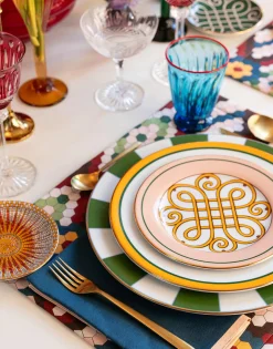 Made in collaboration with the Italian porcelain greats, Ancap, this set-of-two dessert plates is crafted from fine porcelain with hand painted 18k gold trims. We’ve got a range of designs that happy maximalists can mix together, or use this set to bring a jolly jolt to your white china and plain table. Great for a gorgeous gift, these dessert plates do double duty, so snag a few for your salad course or dot around your home as a handy spot for keys or crystals as well.
