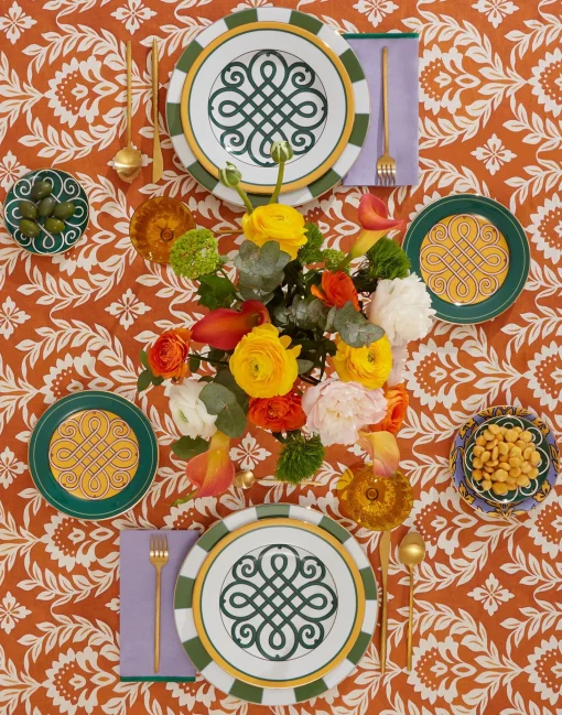 What a dish! By popular demand, we present our new set-of-two Dinner Plates, crafted in ultra-fine Italian porcelain and hand-finished with an 18k gold rim by our fabulous team of Veronese artisans. A bellissima showcase for your kick-ass culinary skills, these beauties feature extra wide rims with our gloriously intricate Milan-inspired Cortile print. Stunning styled simply on a white tablecloth, or layer on top of our new Table-mats to conjure al fresco evenings on the Mediterranean coast.