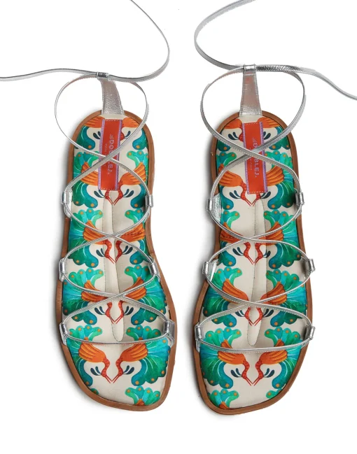 Grandiose inspiration mandates exquisite workmanship in this divine slipon – and who better to craft the perfect Gladiator Sandal than the Italians? Featuring finely woven metallic leather braids, and a footbed laid in our highest vibe high summer prints, these are sandals set for ceremony. Channel Colosseum couture by pairing these with our Three-Way Dress or Cerere Dress, for full-blown abundance energy.