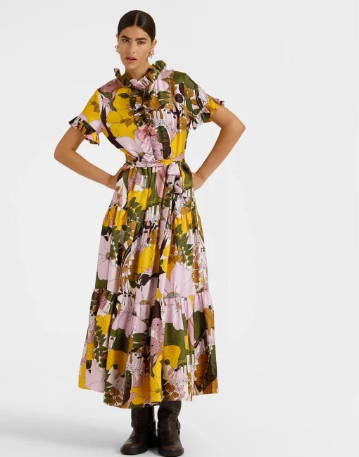Your RSVP includes looking fabulous at all the events on your social calendar this season with this dress that combines elegance with sass. While the Long & Sassy’s T-shirt sleeves bring an insouciant vibe, its beautifully pleated collar can be left open or fastened at the top with a button for a more demure look. Done in our fluid silk twill for ultimate summer swishing, this Big Flowers print is practically begging for a garden party invite – as perfect with buckled sandals as it is a kitten heel.