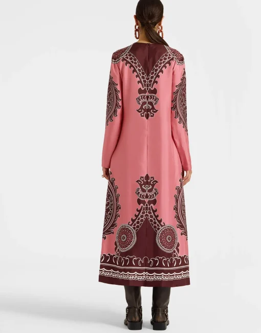 Long Sleeve Swing DressOltrarno Placée Pink in Silk Twill