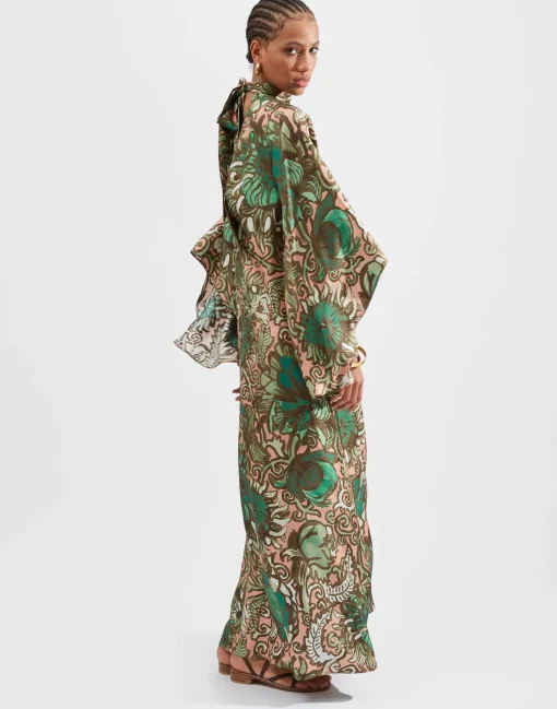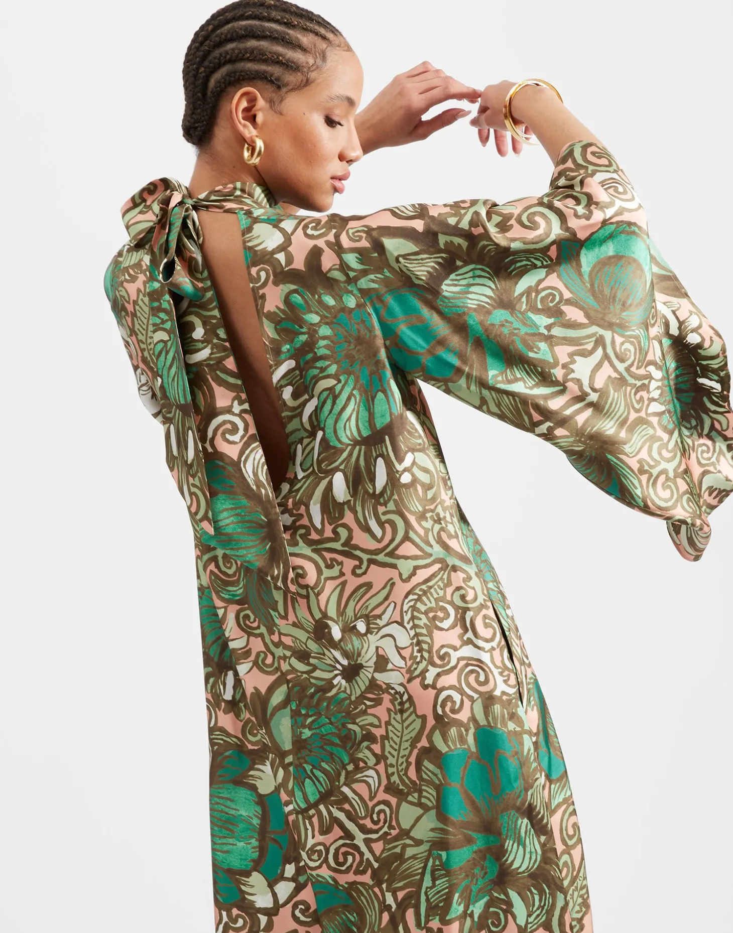 Shouldn’t every babe have a dress called the Magnifico hanging in her closet? La DoubleJ believes so! With a stand-up collar, long sash at the back and draped waterfall sleeves, this special number will glide you around the room with an ease and elegance reserved for the most exclusive of occasions. Cut in glossy 100% silk twill for extra swish and swoosh, this bellissima Pink Dahlia print guarantees to turn heads. Let the compliments commence!