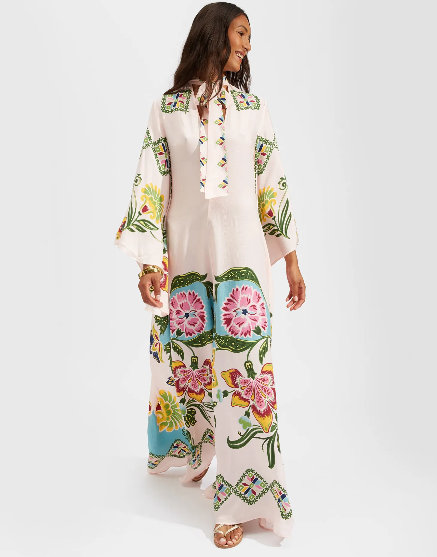 Shouldn’t every babe have a dress called the Magnifico hanging in her closet? We believe so! This exquisite version is all about this blow-your-pants-off floral print, designed in house and hand-placed by La DoubleJ’s Italian craftspeople. We adore it! Cut in our textured, matte pebbled sablé for excellent drape, it features a stand-up collar, long sash at the back and draped waterfall sleeves. Guaranteed to make you the most enchanting person in any room you step into.