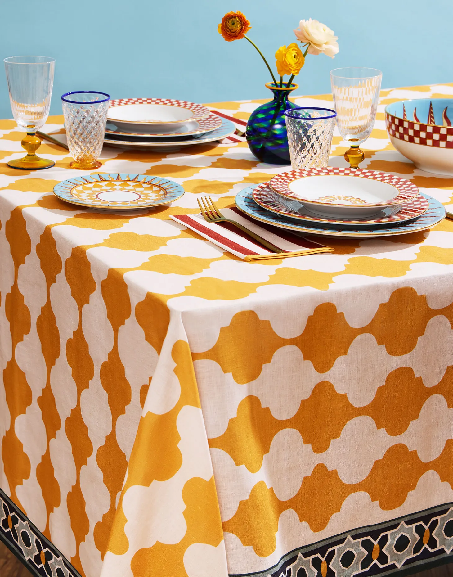 If you thought Cleopatra was picky about linen, you’ve obviously never met a Milanese housewife. Our crisp 100% linen tablecloths come printed in our latest greatest LDJ patterns, like this Seville in Spring inspired Plaza print, that can be mixed and matched with colour-popping napkins and placemats for a truly maximalist dining experience. Treat this beauty with care: our bellissimo Italian-made linen has natural irregularities, such as small knots in the yarn, but for us that doubles the charm.