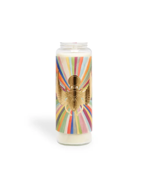Let there be light! With elevating your energy state as one of our main objectives here at LDJ, we’re delighted to deliver these stunning statement pillar candles designed as the perfect addition to your at-home altar. Historically symbolizing a bridge between the heavens and the earth, pillar candles have illuminated the hearts and homes of the Italian people for centuries. Crafted from unscented mineral and vegetable wax, each of ours will arrive cloaked in three of our most uplifting prints – Bast, inspired by the cat-headed goddess of protection and pleasure; Nile, an energetic tapestry of geometrics and ancient symbols; finally, the Scarab, surrounded by rays in homage to the god of the rising sun, Kephri. Glowy. Giftable. Utterly gorgeous.