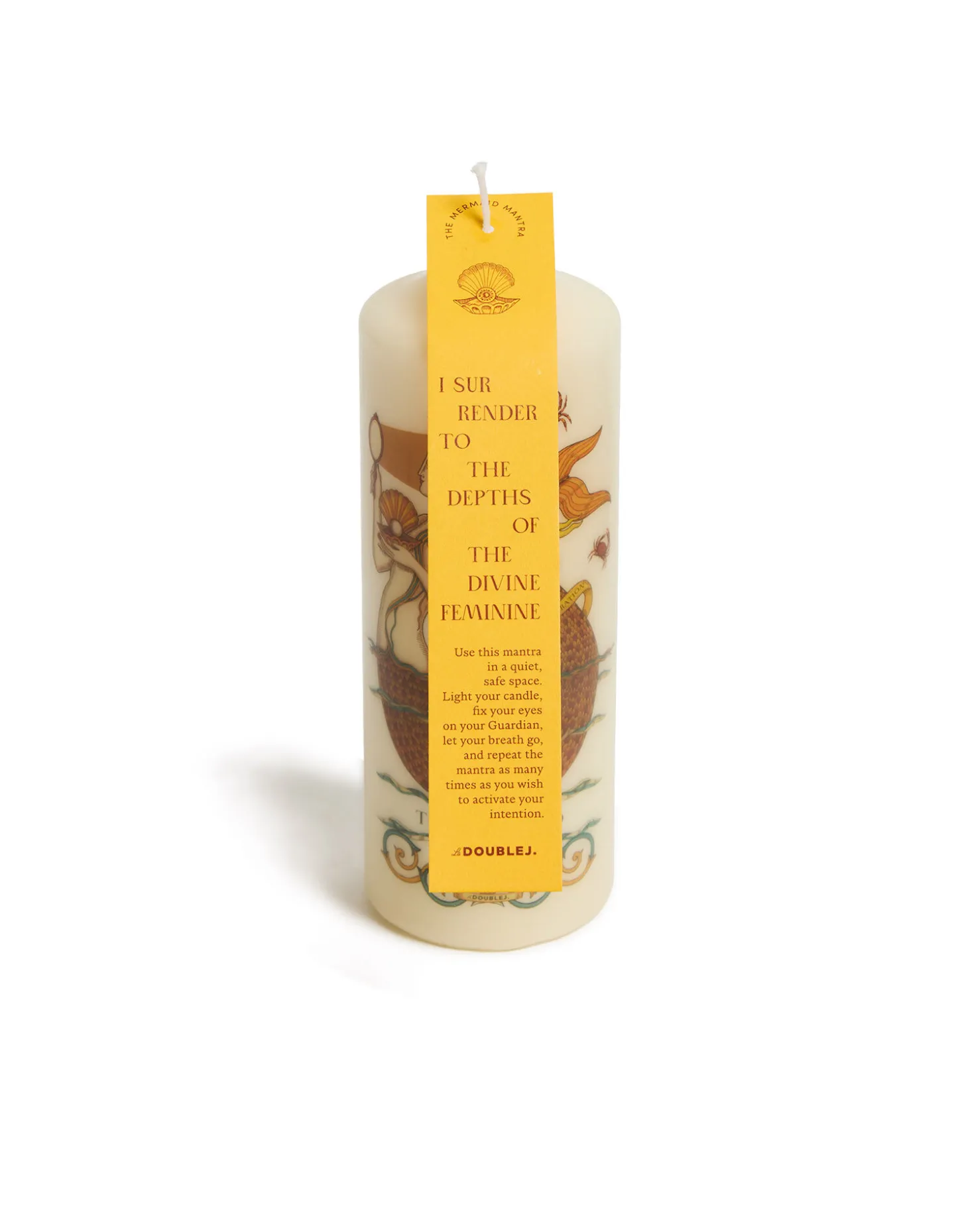 Let there be light! With elevating your energy state as one of our main objectives here at LDJ, we’re delighted to deliver these stunning statement pillar candles designed as the perfect addition to your at-home altar. Historically symbolizing a bridge between the heavens and the earth, pillar candles have illuminated the hearts and homes of the Italian people for centuries. Crafted from unscented mineral and vegetable wax, each of these arrives with one of our energy elevating Guardians embossed directly onto the wax – The Angel for temperance, The Dragon for strength, The Sphinx for creativity, The Mermaid for sensuality or The Unicorn for straight-up magic. What energy are you hoping to ignite?Crafted in collaboration with Turin-based artist Elisa Seitzinger, the Guardian Collection features five energy-protecting supernatural stewards;The Unicorn; The Sphinx; The Angel; The Dragon: The Mermaid. With intricate hidden symbols lovingly etched, painted or printed onto each piece, these are more than mere beautiful objects – these are vibration-raising, mood-boosting, positivity-bringing happiness generators. Select the specific Guardian that activates your desired energy, or collect all five for maximum cosmic consciousness.If so moved, feel free to use this mantra with your Guardian item: “I surrender to the depths of the Divine Feminine”
