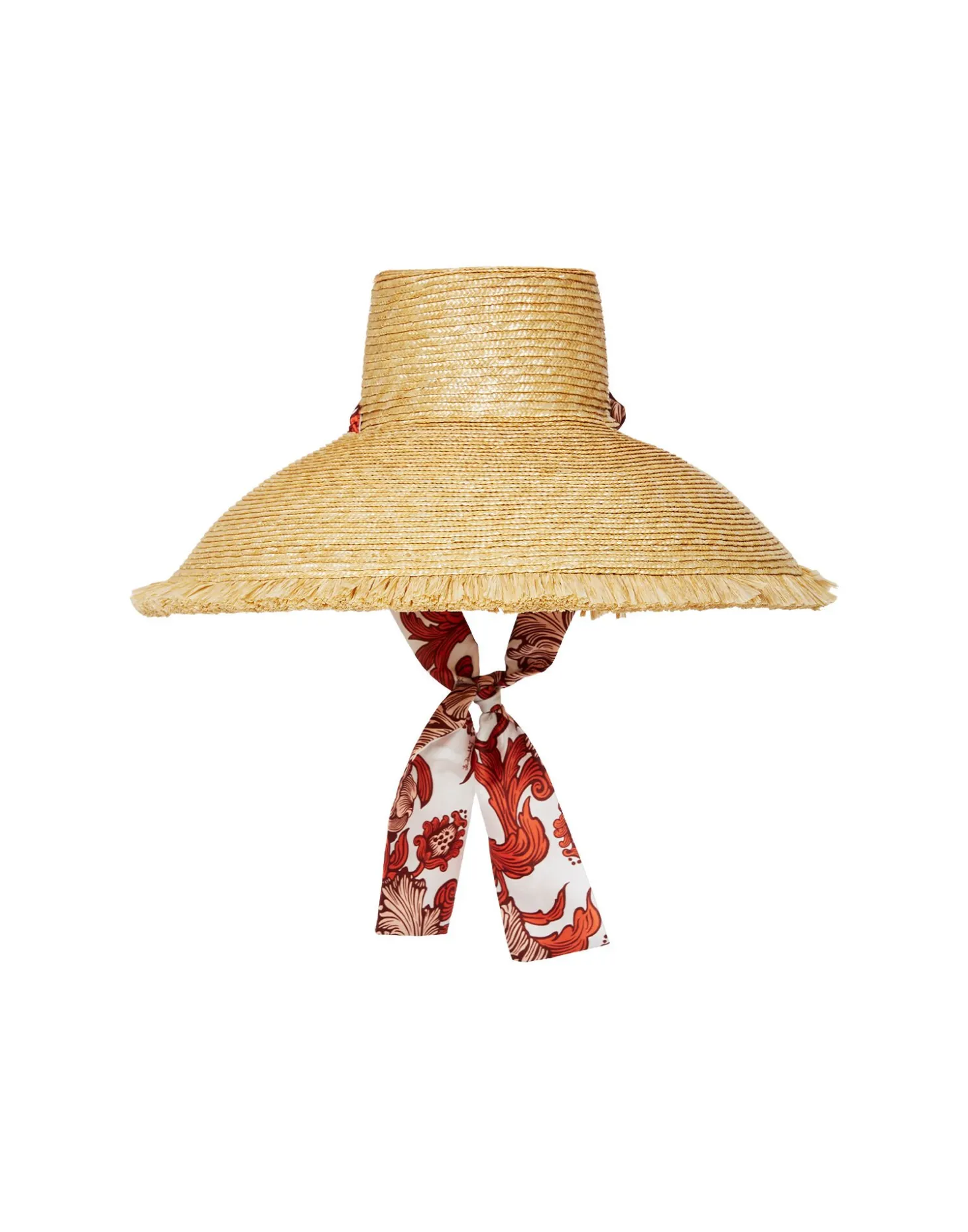 Go big but don’t stay home, Bella – this hat was made to be seen. Crafted from hand-woven raffia, with an uber wide, statement brim, this is a classic made contemporary with a removable printed tie which can be left loose or tied around your chin so it doesn’t fly off while you’re zipping around Lake Como on your Riva.