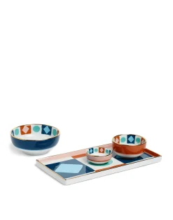 Let this striking porcelain Serving Tray get the party started! Part of our Aperitivo Collection, its long, flat shape is perfect for piling high with hunks of parmigiano, bruschettini and bresaola to get your people popping. It comes printed in our fun-loving Diamond Dots print and hand-finished with an 18k gold rim by the Verona-based porcelain dynasty Ancap. Bring it back after dinner loaded with sweet treats for double the hostess points.