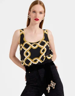Done in a simple silhouette that will go with everything, the Twirl Top is your wardrobe’s latest wonder workhorse. Its scoop neck and chic wide straps are a perfect match for work denim, holiday skirts and everything in between, while the 100% silk fabric brings tons of glossy polish. Think of it in your wardrobe like ice cubes in your Negroni – essential.